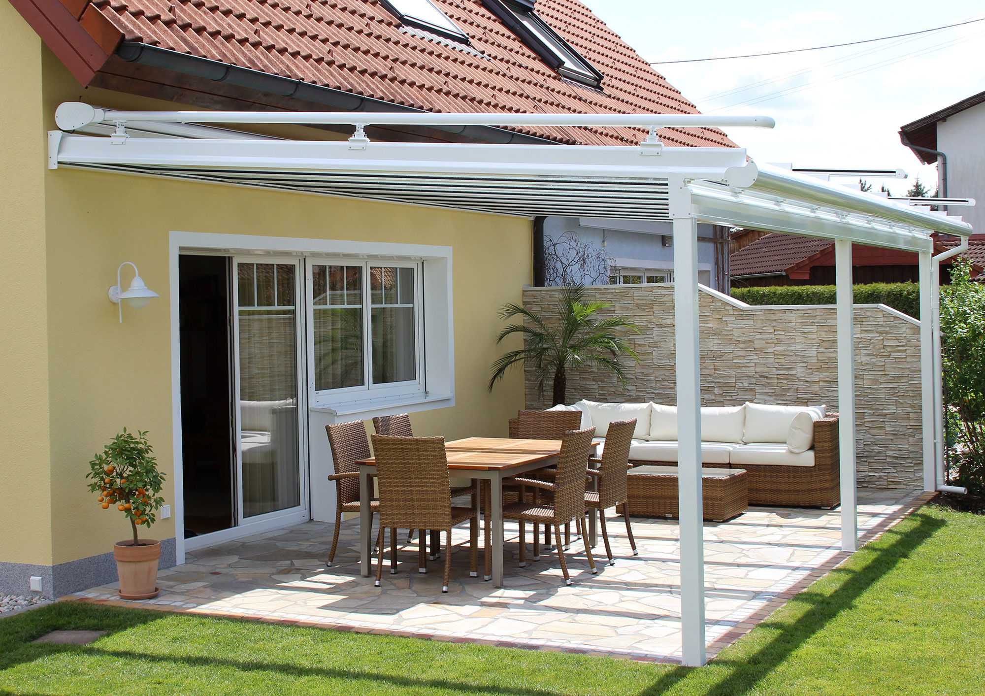 Damit sie aber funktional & optisch ansprechend bleibt und lange Freude bereiten kann, benötigt sie gut durchdachten Schutz. Hierfür eignen sich unsere hochwertigen Terrassenüberdachungen, die den Einfluss von Wind & Wetter minimieren und ganz flexibel an Ihre individuellen Anforderungen angepasst werden können.