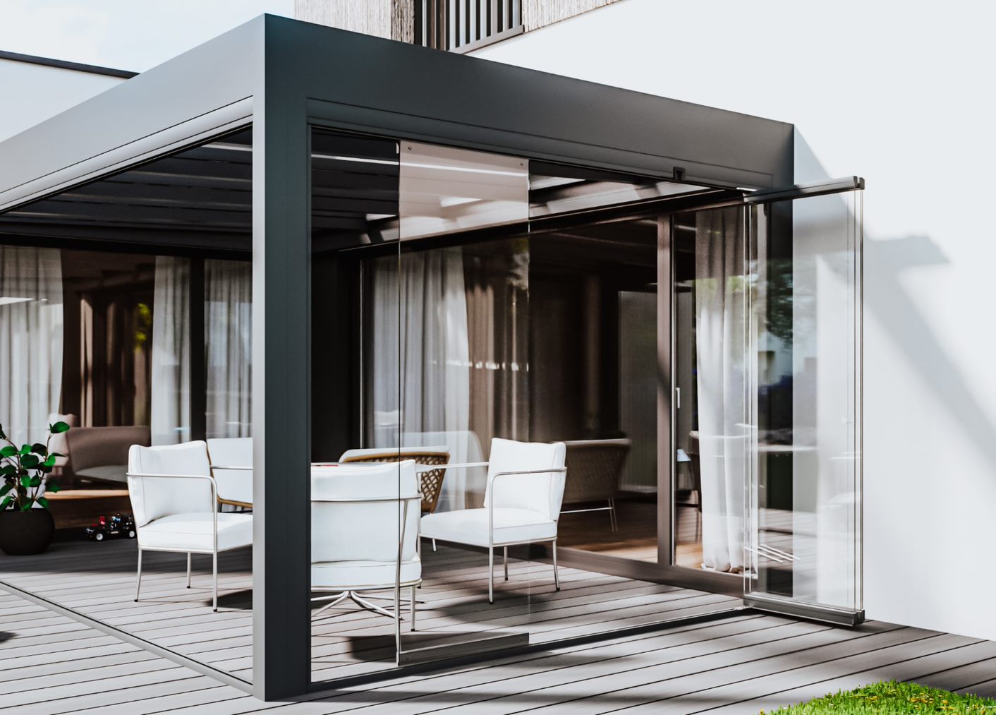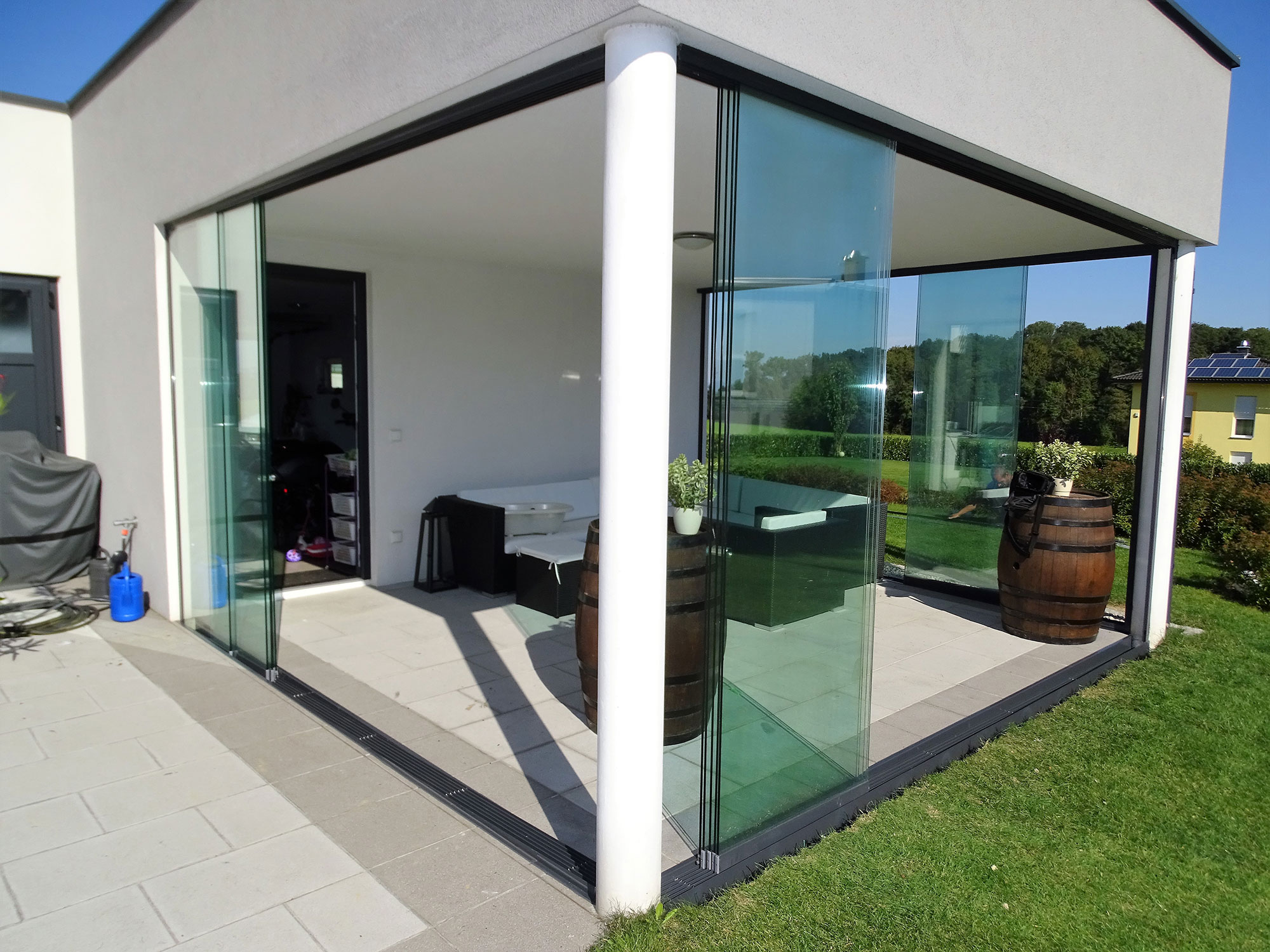 Wir bieten Ihnen thermisch getrennte Schiebewände, Fixteile oder Faltwände sowie Ganzglasschiebewände als Wind- und Wetterschutz. Unser Expertenteam geht flexibel auf Ihre Wünsche und räumlichen Gegebenheiten ein und findet für jede Situation die passende Lösung.