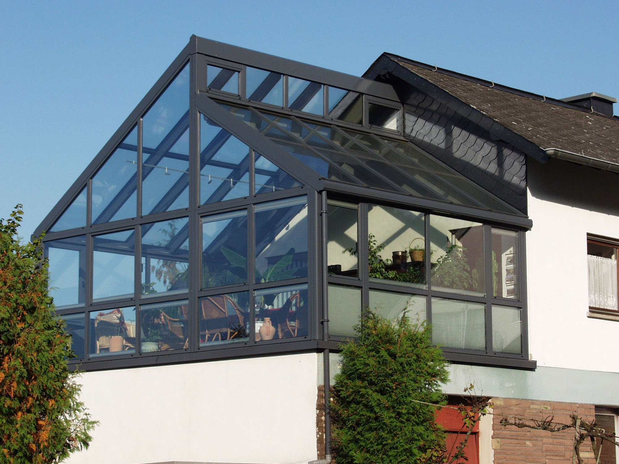 • Wohnen mit der NaturMit einem Schalk-Wintergarten in Wohnraumqualität gewinnen Sie zusätzlichen Lebensraum und schaffen sich eine Oase, die grün und frisch ist wie Ihr Garten.