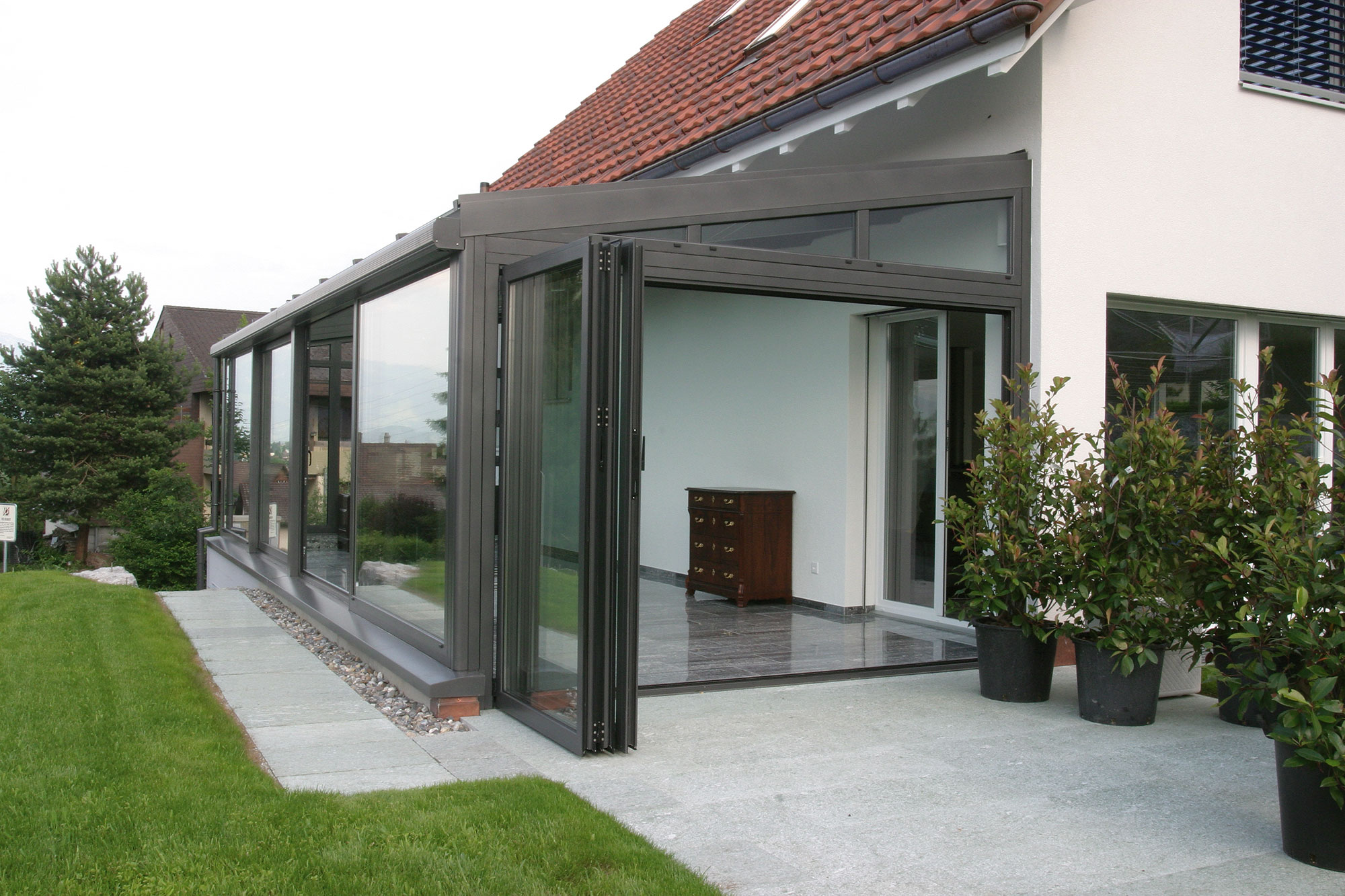 • Individuelle GestaltungVon einfachen Ausführungen bis zum pyramidenförmigen Wintergarten zum Aufschieben oder Falten – Schalk passt Ihren Wintergarten Ihren Bedürfnissen an.