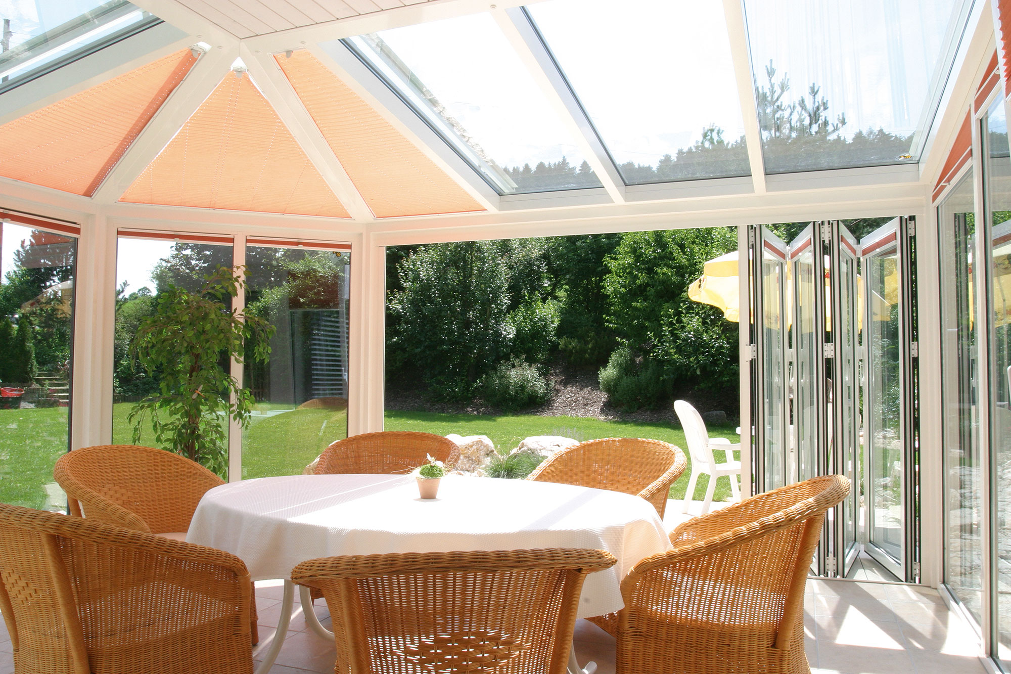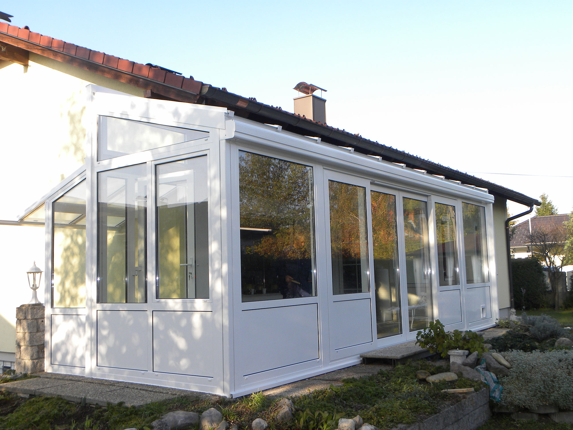 • Schutz vor Wind & WetterUnsere lichtdurchfluteten Wintergärten sind wunderbar gemütliche und warme Orte, die optimalen Schutz vor Wind und Regen bieten.